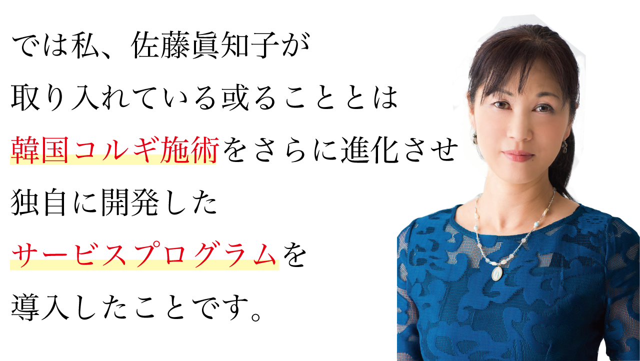 佐藤眞知子は、「小顔コルギ」でお客様の心を開き